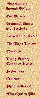 The term “Legacy Theatre” was coined by Ellis C. Pike to define his concept of Professional Historical Re-creation, or ‘Living History’ as it is commonly known. When he formed Here be Dragons in 1993 after years of involvement in this field he was aware of the growing popularity of themed events, historical re-enactments and costumed entertainers. His philosophy was to celebrate the wealth of British history using the dramatic ability of talented performers who had a real feel for the past. |